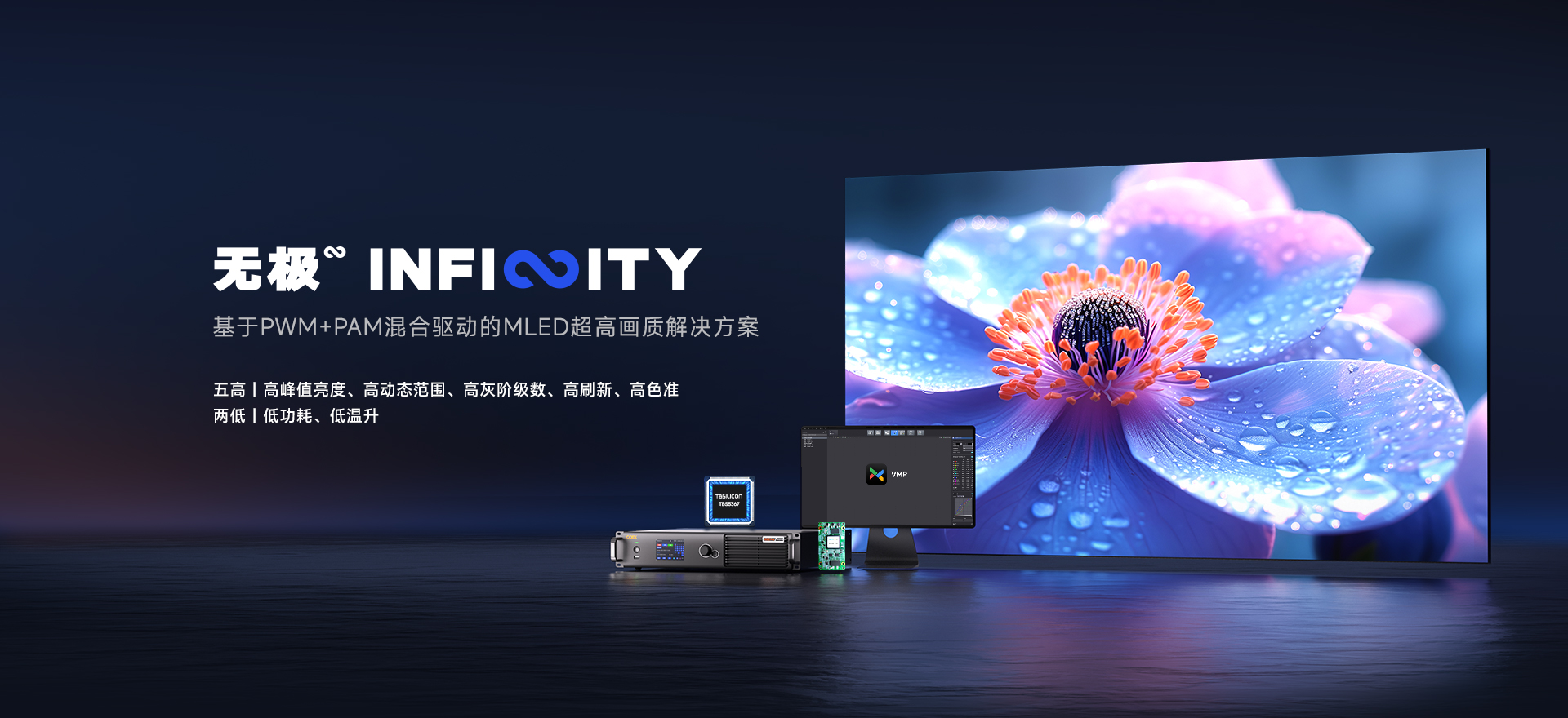 基于PWM+PAM混合驅(qū)動(dòng)的MLED超高畫(huà)質(zhì)解決方案,通過(guò)控制系統(tǒng)、智能算法、全灰階校正與PWM+PAM混合驅(qū)動(dòng)IC的深度融合,實(shí)現(xiàn)全鏈路技術(shù)突破,呈現(xiàn)非凡的顯示效果